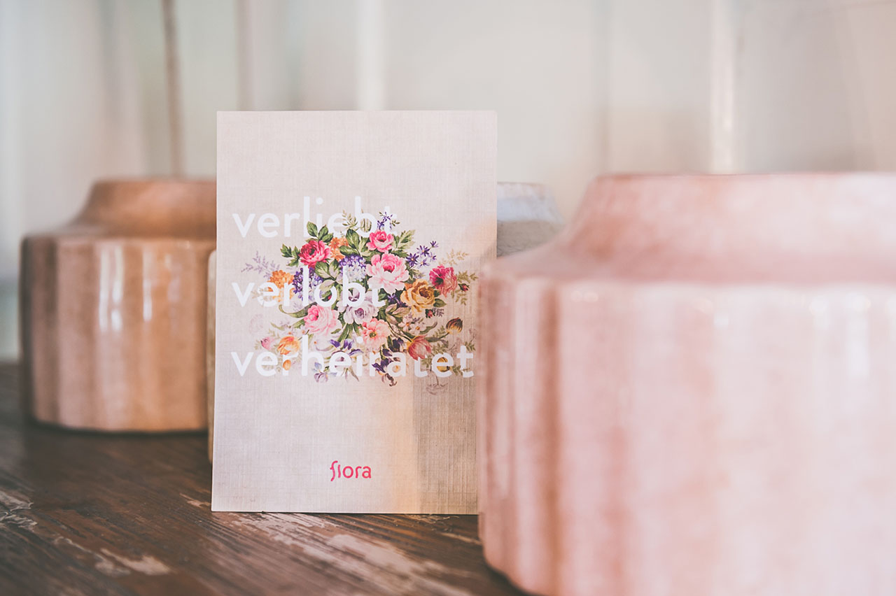 Mit Blumen sagt man das, was Worte nicht mehr können. Soviel ist seit ewigen Zeiten schon klar. Und bei Flora übergeht diese zeitlose Tradition direkt in die Gegenwart über und wir zu einer wundervoll runden Sache. Die Schrift fließt und lässt der Botschaft freien Raum. Sie kommt ja mit den Blumen. Von Herzen eben. Einfach so!